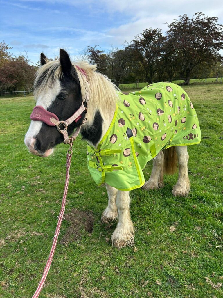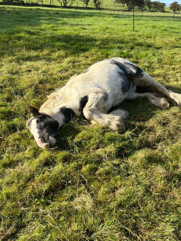 “Dovey has been a super star. Really nice to have the support and phone numbers to be able to ring for advice when she came back home with us too.” Said Zoe, sharing a few adorable photos of the piebald cob in her new home.