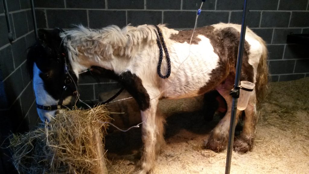 The staff at our Lincolnshire site spent New Year’s Eve in 2014 administering an additional three hour blood transfusion to this seriously ill pony. Over a five month period, Tinchy received intensive round the clock care from our team and had a total of fourteen litres of plasma transfused in a bid to boost his immune system and aid his recovery. Plasma donations were given from a range of healthy horses, including Adoption Star and ex-police horse, Justice. During upsetting and tiring cases we always worry if horses like Tinchy, who are in such a dire condition, can be saved. Tinchy was borderline, but with the generous help of our supporters, he survived.