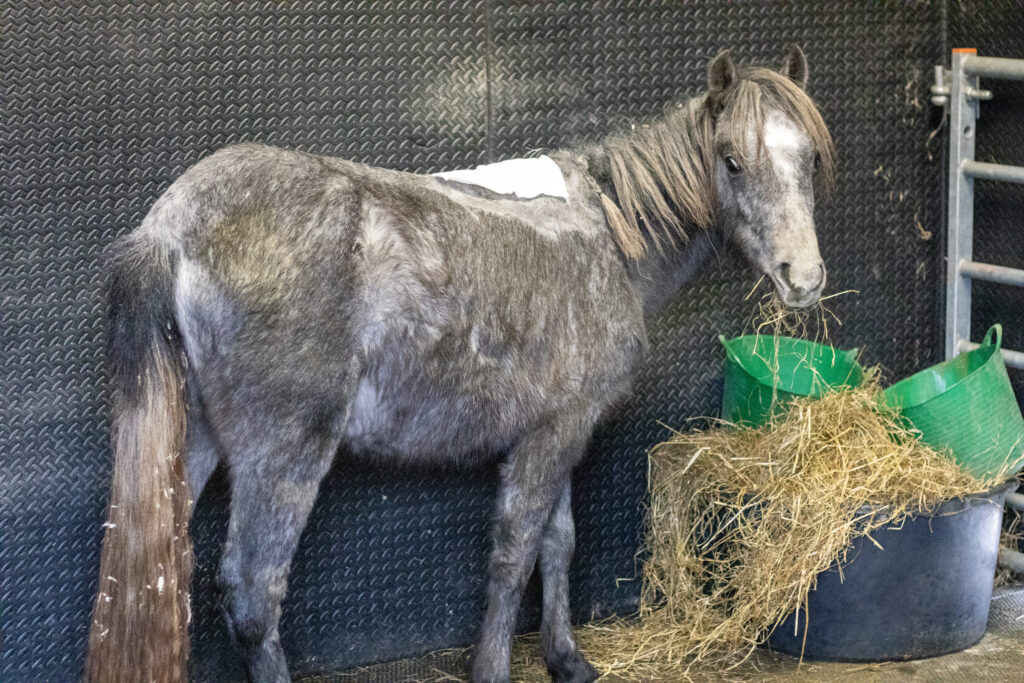 Seven-month-old Welsh filly Olive was discovered by the RSPCA, dumped on a road in Bishop Auckland, with a shockingly deep open infected wound to her withers (the bony spinal processes at the base of a horse’s neck). An abandonment notice was put in place, but again, no owner came forward and Olive was signed over into their care.