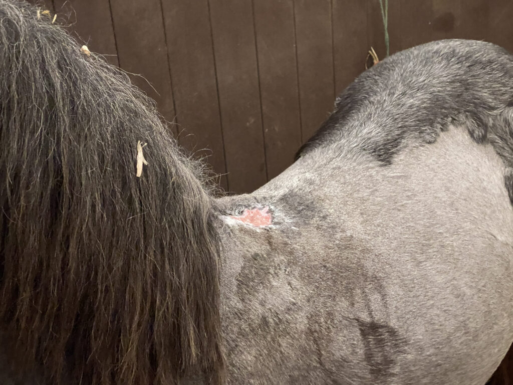 Olive required unique and complex treatment, due the significance of the wound, and with the knowledge that Bransby Horses had the facilities and expertise to provide the best possible ongoing care, the RSPCA asked us to take Olive in.