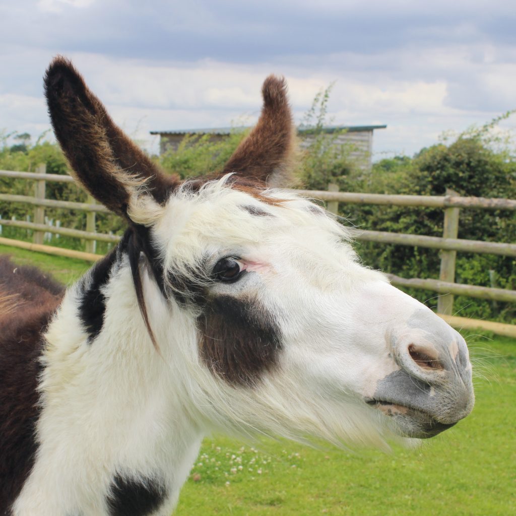 Matilda came to Bransby Horses with her mum, Gnasha, and two other donkeys after she was abandoned on a roadside. Matilda is a piebald donkey who loves to be around her friends.