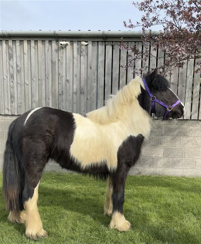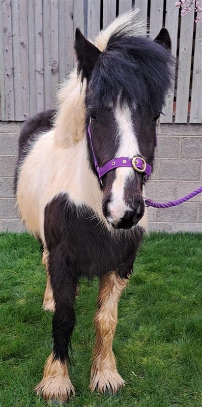 Beverly is a 2 year old, 12hh, piebald, Cob, mare who is ready to find her home as a non-ridden companion.